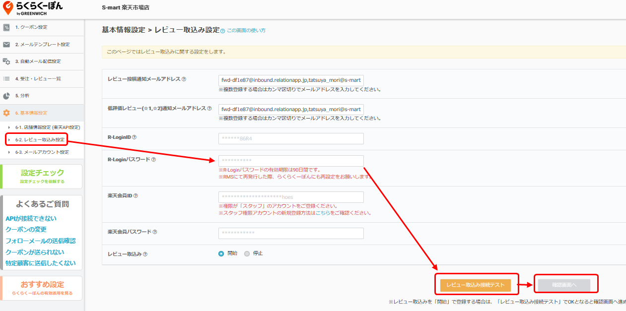 CROSSMALLレフトナビ ▶ システム設定 ▶ 店舗情報