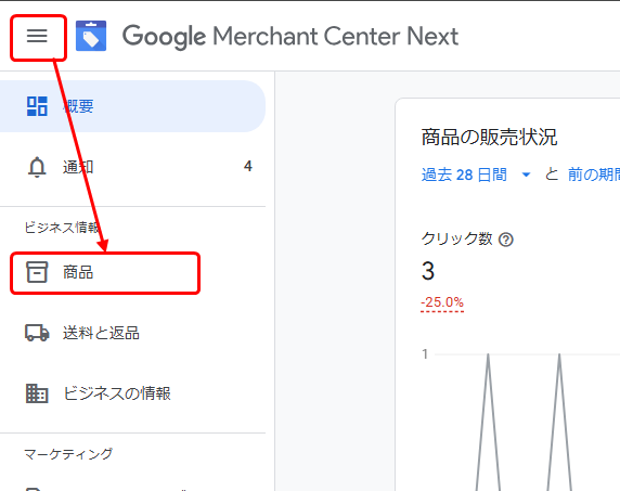 GoogleMerchantCenterを開く