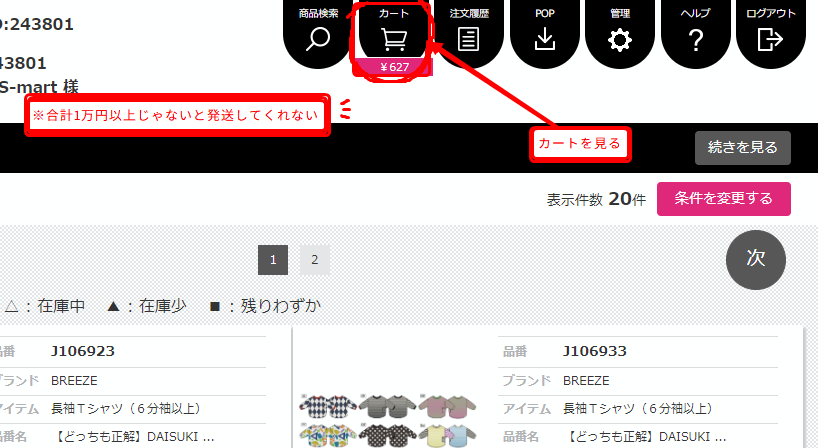 ※商品画像をクリックしないと発注画面に飛べないので注意!