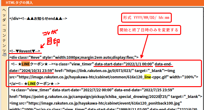 あいさつメッセージのクーポン獲得URLを差し替える