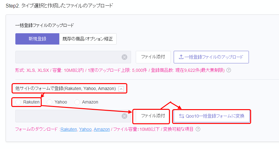アップロード