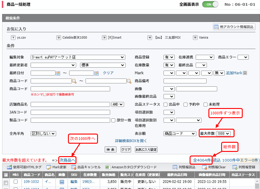 wowma店の商品データのみ作成し、【マーク5】を付けておく。(出品はしない)