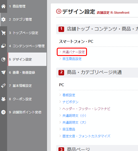 【2】 スマホ・PC用 - 共通バナー設定 へ