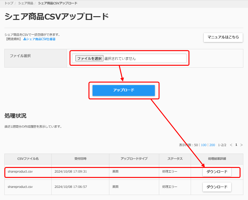 CSVのファイル名は必ず「shareproduct.csv」にすること!